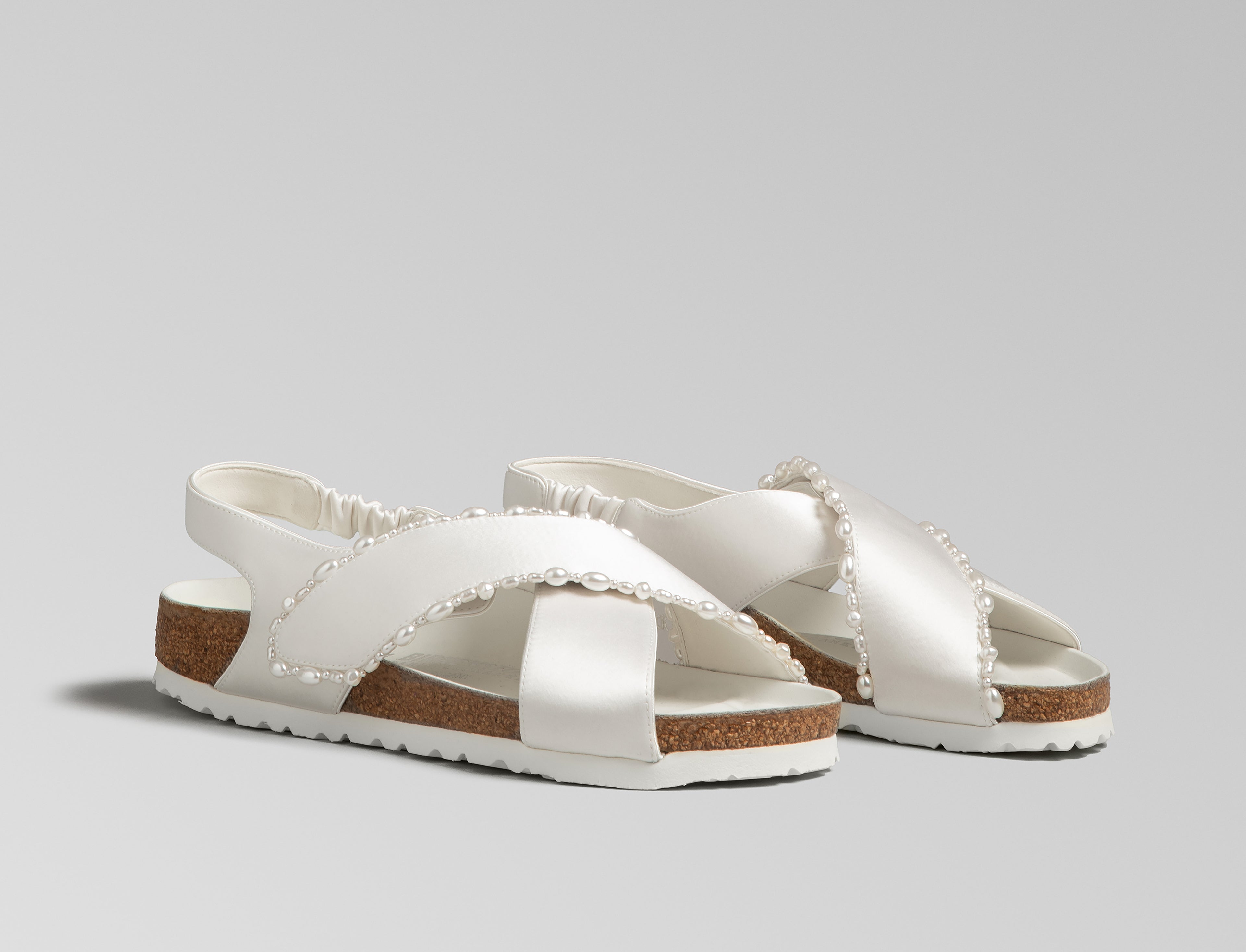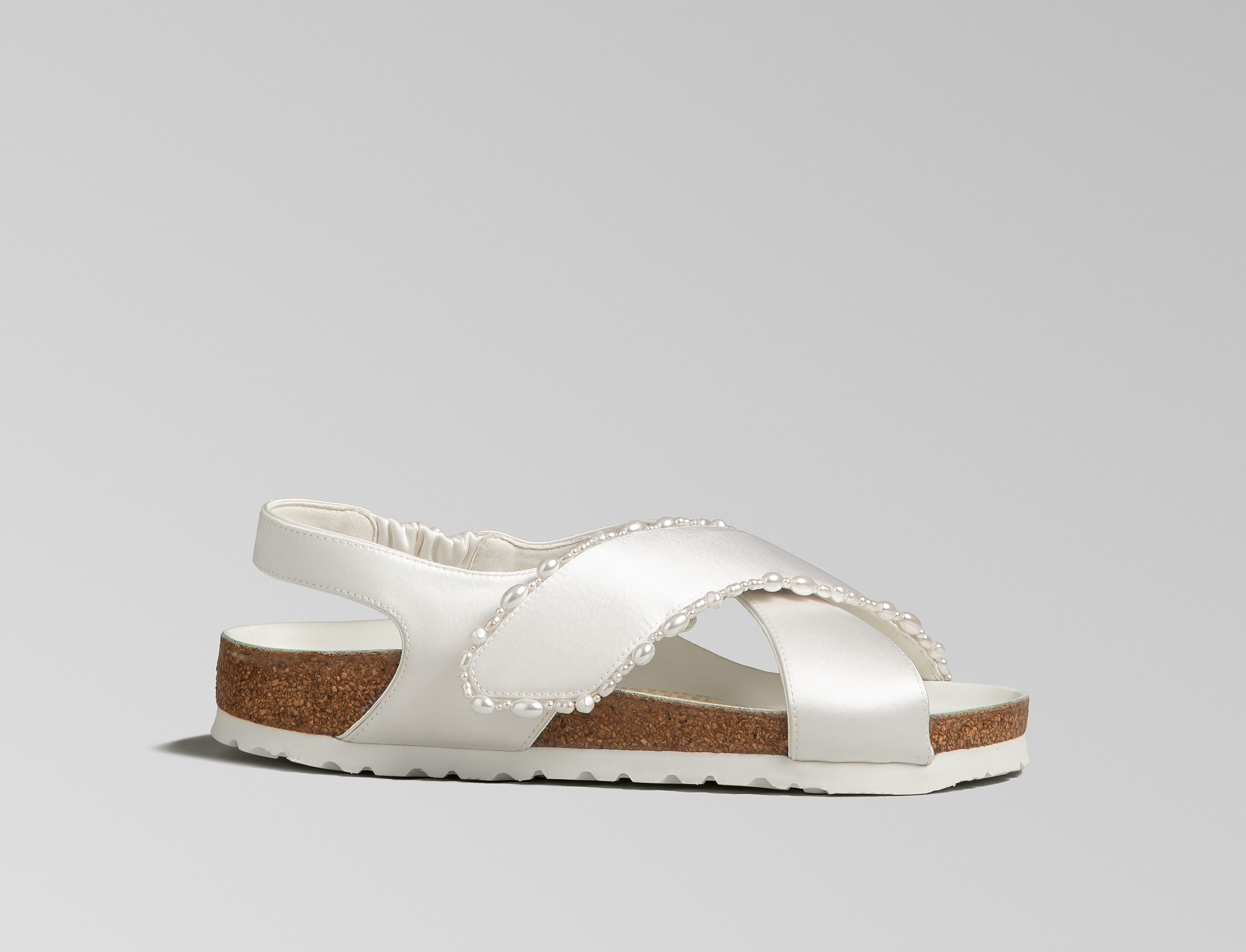 The Tulum is reimagined in a luminous ivory satin, featuring a graceful crossover profile and a slim ankle strap adorned with delicate pearls. The design also introduces an innovative adjustable hidden buckle closure. Handcrafted in Germany, the shoe merges BIRKENSTOCK’s legendary comfort with Danielle Frankel’s signature touch of refined elegance.